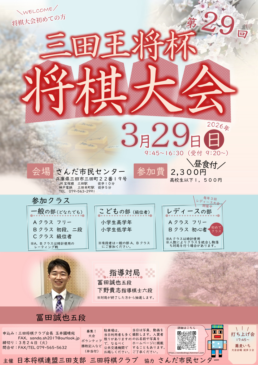 三田王将杯将棋大会 ポスター(PDFファイルが開きます。)